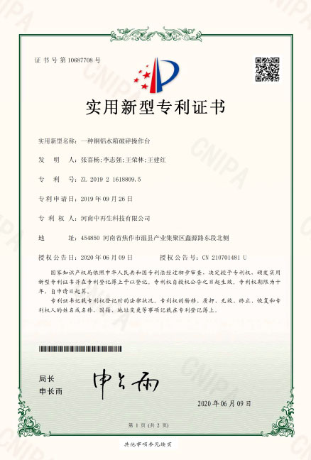 ZL2019216188095.一種銅鋁水箱破碎操作臺
